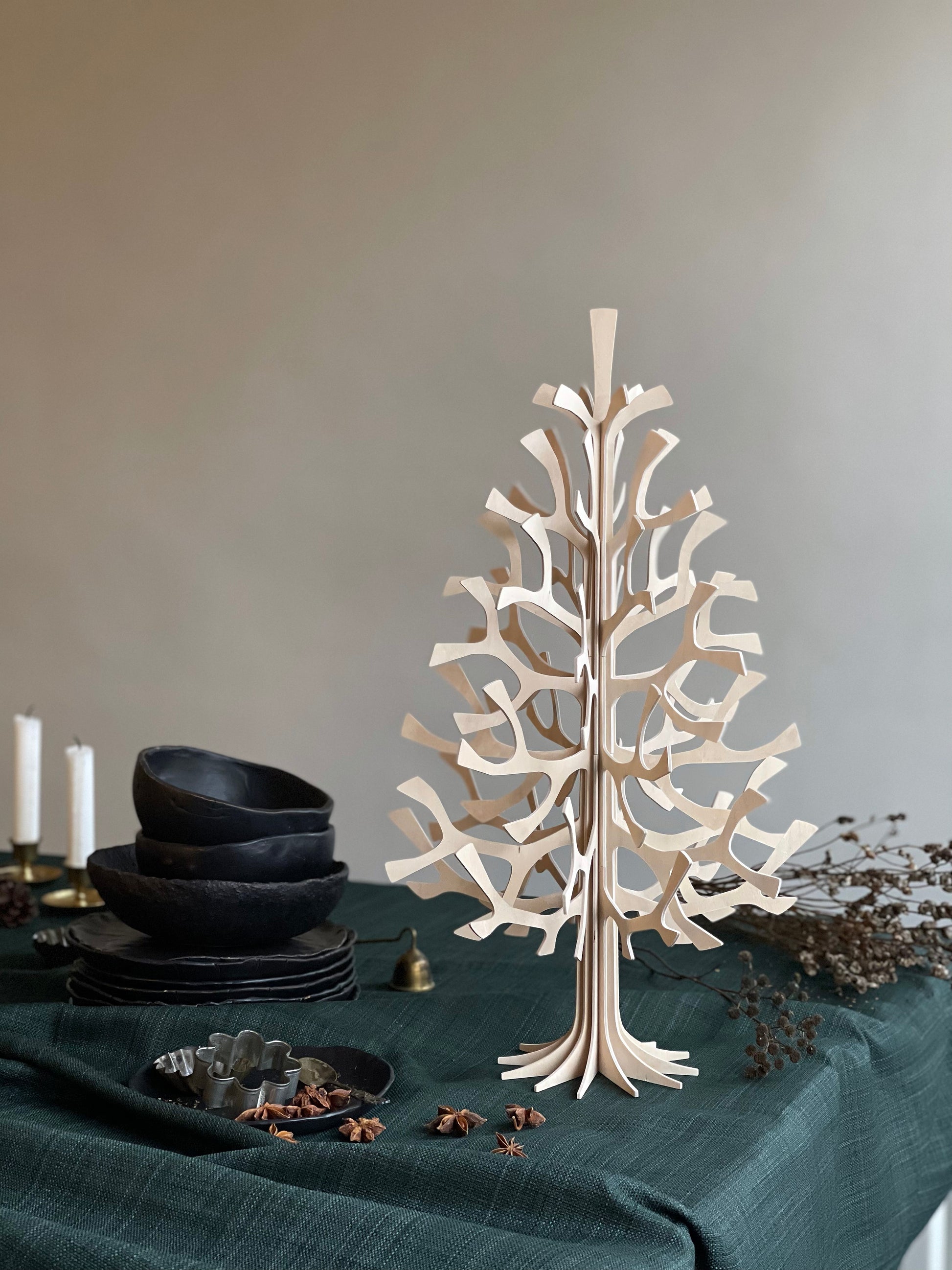 Ce sapin décoratif en bois de 50cm apporte une touche chaleureuse et épurée à votre intérieur. Sa silhouette graphique, inspirée de la nature, crée un jeu d’ombres poétique et met immédiatement en valeur votre décoration de saison.