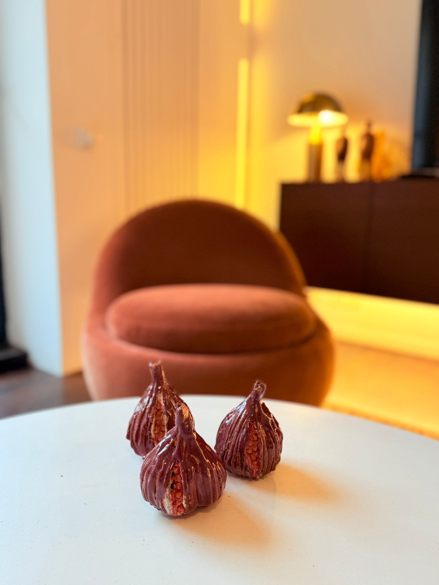 Leur émail brillant, travaillé avec soin, joue avec la lumière et les textures, donnant vie à ces sculptures gourmandes. Réalisées à partir de céramique portugaise émaillée, elles allient authenticité artisanale et touche contemporaine.